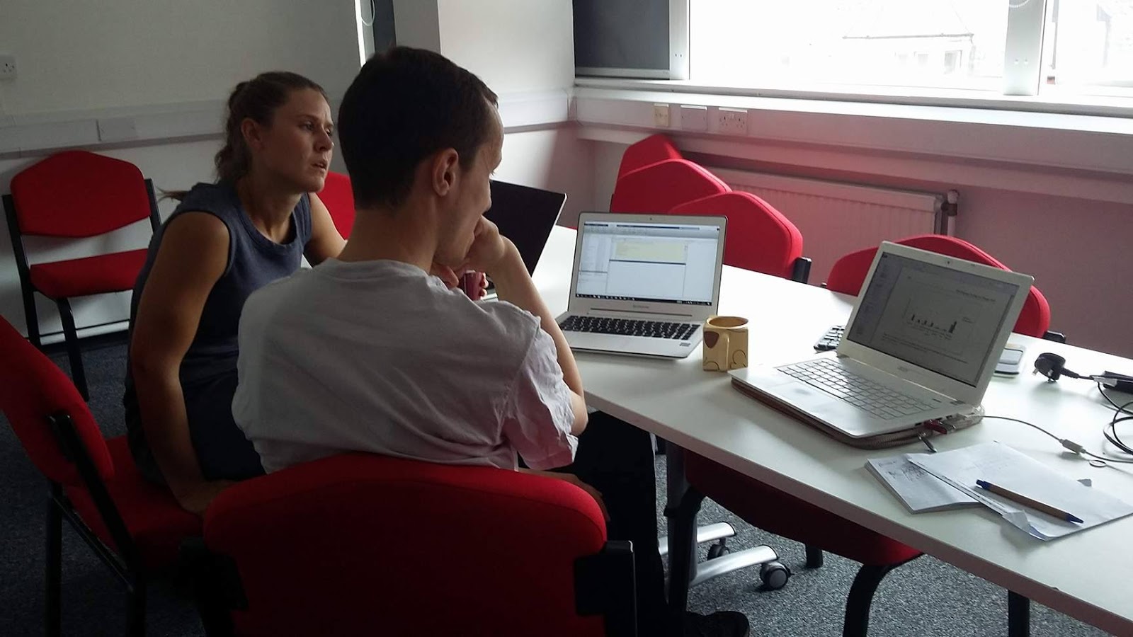 Today I visited the Psychology Departement at Cardiff University for a crash course in statistics with Craig Hedge, PdD in experimental psychology. Craig is currently working on a Meta-analysis on reliability studies in cognitive control and is the go to guy when you are struggling with statistics. Liz and I had a few specific requests; we wanted to know how Craig carries out randomisation procedures using MatLab, we wanted him to explain confidence intervals and when to use them and we wanted to learn us about forest plotts.